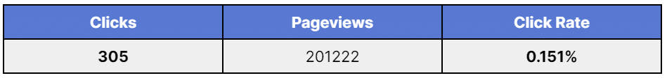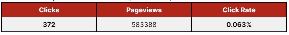 To my surprise, the click rate not only remained the same but also showed an upward trend in the following months, reaching 0.134% in Oct/Nov and 0.151% in Nov/Dec.