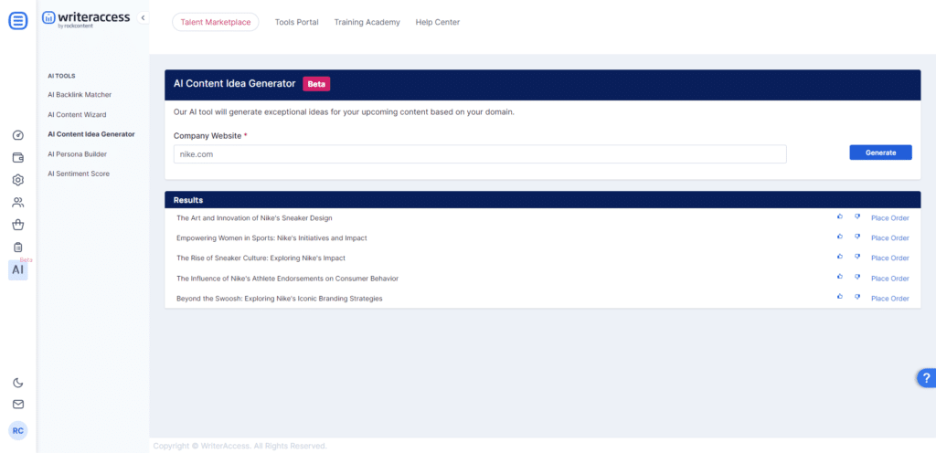 Experience the transformative capabilities of the AI Idea Generator by WriterAccess by signing up for the free 14-day trial. Discover firsthand why this AI tool stands out as an invaluable asset for website content creation.