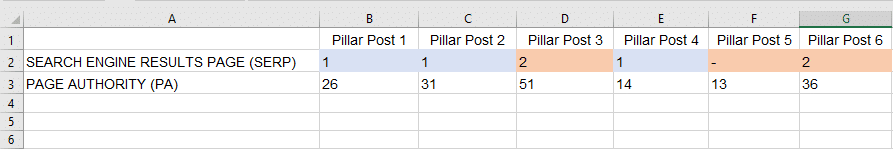 If you prefer to make more detailed documentation of your topic clusters, you can also choose to organize them using a spreadsheet, as in the following image: