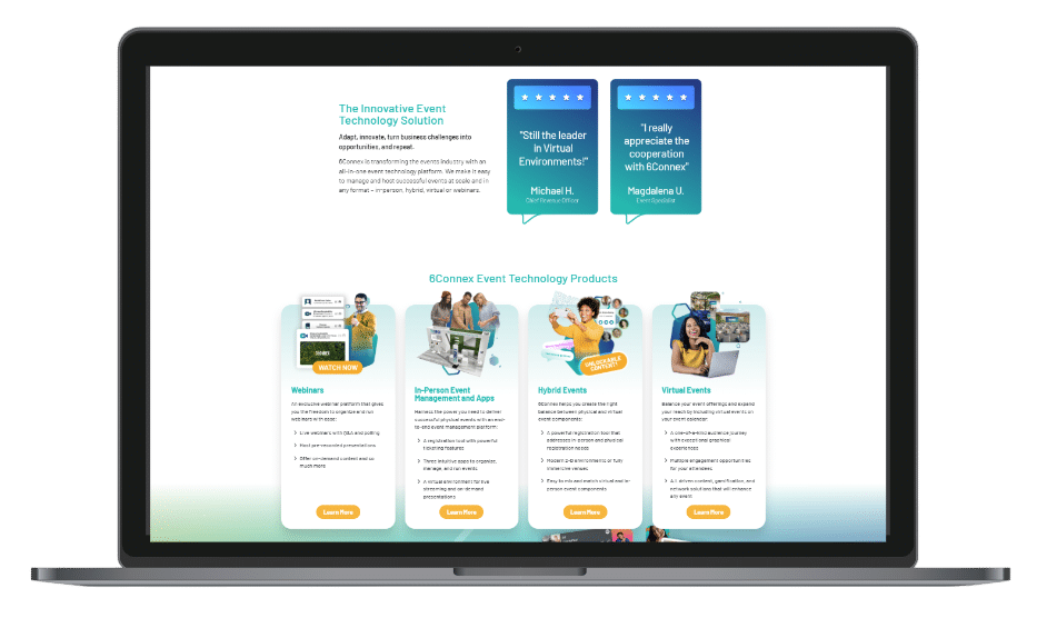 6Connex is a web-based event technology platform that empowers businesses to host successful events, whether they be virtual, hybrid, or in-person.